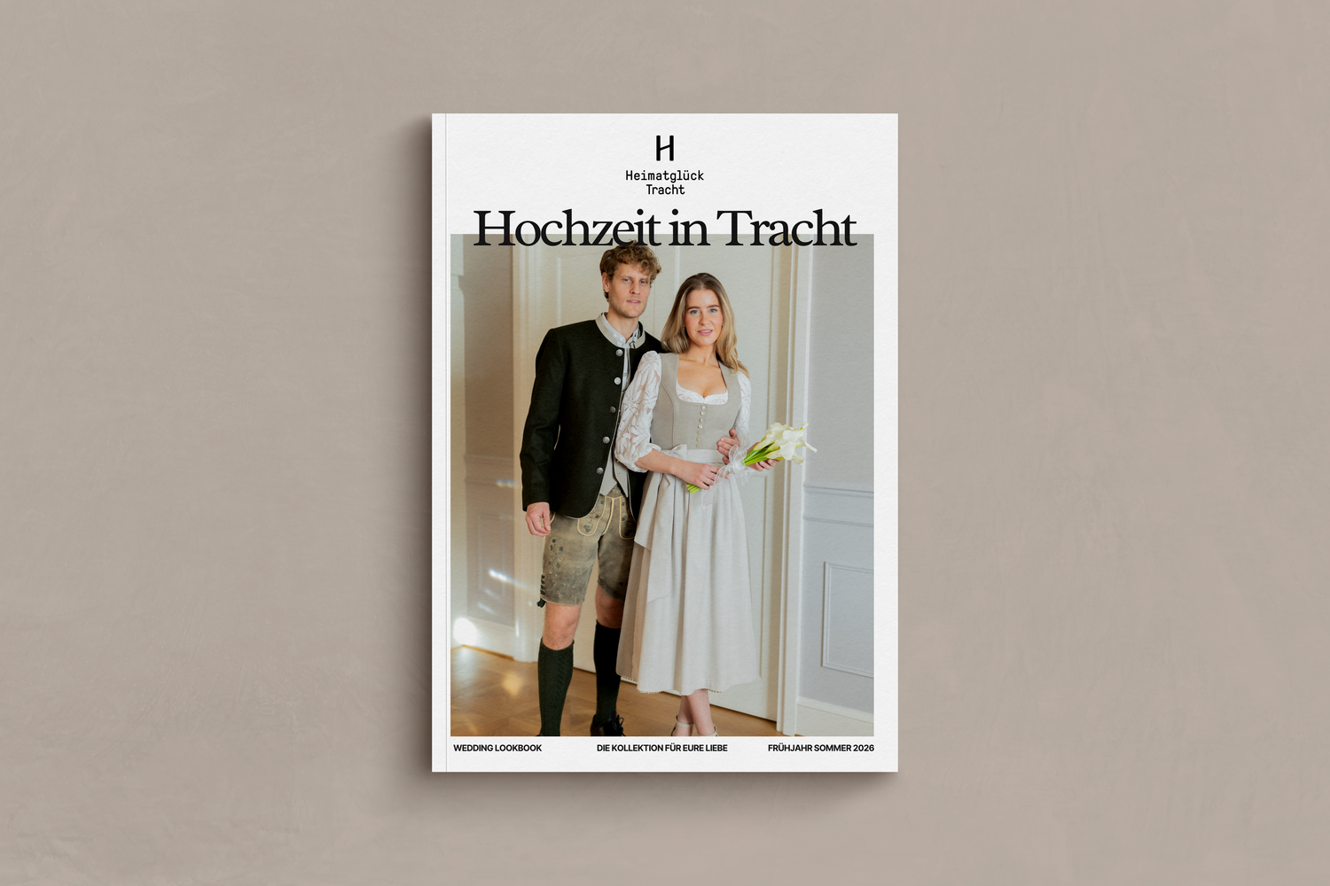 Dann seid ihr bei uns genau richtig! Bei Heimatglück dreht sich alles um stilvolle, perfekt abgestimmte Looks für euren großen Tag. Wir haben es uns zur Aufgabe gemacht, Brautpaare auf dem Weg zu ihrem Traum-Outfit zu begleiten, Inspiration zu schenken und die schönsten Styles für eine Hochzeit in Tracht zu präsentieren. Unser exklsuives Wedding Lookbook bietet euch eine exklusive Vorschau auf die aktuelle Kollektion und zeigt harmonisch abgestimmte Kombinationen für Braut & Bräutigam. Ob klassisch, modern oder traditionell – entdeckt unsere harmonisch abgestimmten Kombinationen für Braut & Bräutigam und findet das perfekte Outfit für euren großen Tag!